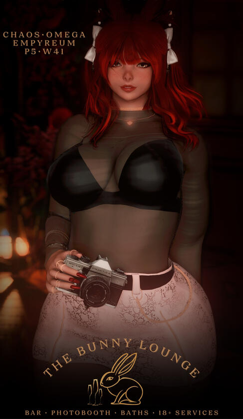 My photography studio is located inside the Bunny Lounge, located on EU • Chaos • Omega • Empyreum • Plot 5 Ward 41It is mainly a gathering place for people of all horizons to socialize, so you will find a lot of different activities to run with fellow patrons of the Lounge. It isn't a venue.I use it as a place to set up appointments in case of a shooting, but I also spend some of my free time there, so your best chance to meet me in game is to hop on and come visit ♥ !Schedule is as follows :