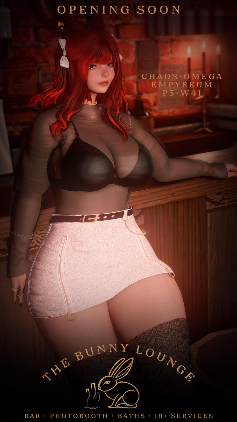 My photography studio is located inside the Bunny Lounge, located on EU • Chaos • Omega • Empyreum • Plot 5 Ward 41It is mainly a gathering place for people of all horizons to socialize, so you will find a lot of different activities to run with fellow patrons of the Lounge. It isn't a venue.I use it as a place to set up appointments in case of a shooting, but I also spend some of my free time there, so your best chance to meet me in game is to hop on and come visit ♥ !Schedule is as follows :